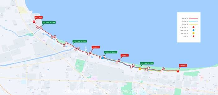 線路:音樂廣場—海濱路—七彩長廊萬豪酒店附近折返—海濱路—音樂廣場。